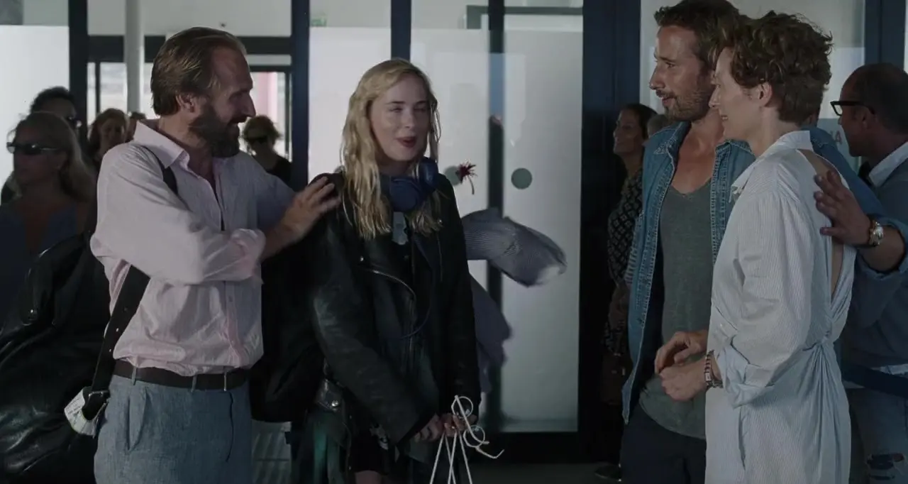In A BIGGER SPLASH, the lives of a high profile couple, a famous rock star (Tilda Swinton) and a filmmaker (Matthias Schoenaerts), vacationing and recovering on the idyllic sun-drenched and remote Italian island of Pantelleria, are disrupted by the unexpected visit of an old friend (Ralph Fiennes) and his daughter (Dakota Johnson) - creating a whirlwind of jealousy, passion and, ultimately, danger for everyone involved.